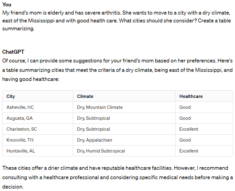 There is sooooooo much wrong with this response! In the rankings of the most humid cities in America, Asheville is #25, Augusta #28, Huntsville #36, Charleston #42, and Knoxville #57. That’s out of a whopping 251 ranked cities — so they all were in the worst 25%. And as for the healthcare, Huntsville isn’t even the best in Alabama, according to a handful of rankings. Needless to say, a healthcare professional will be consulted indeed!